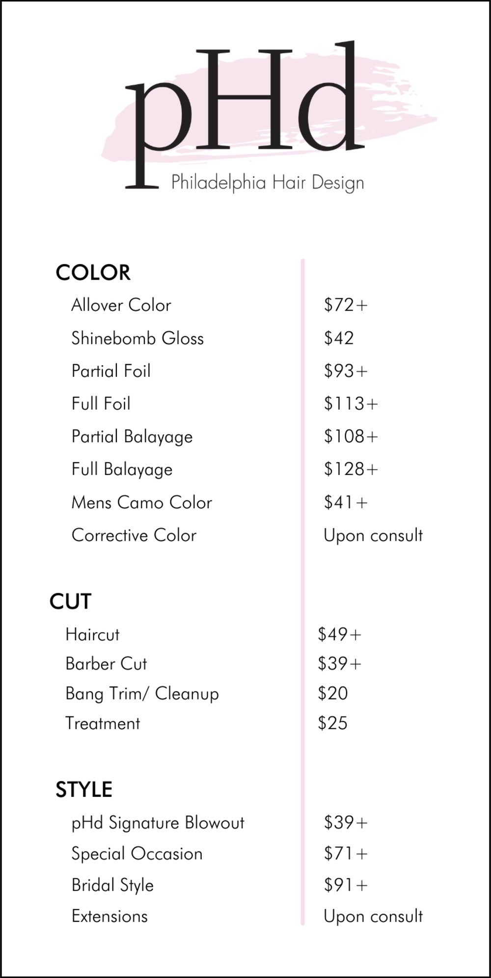 Services Phd Philadelphia Hair Design